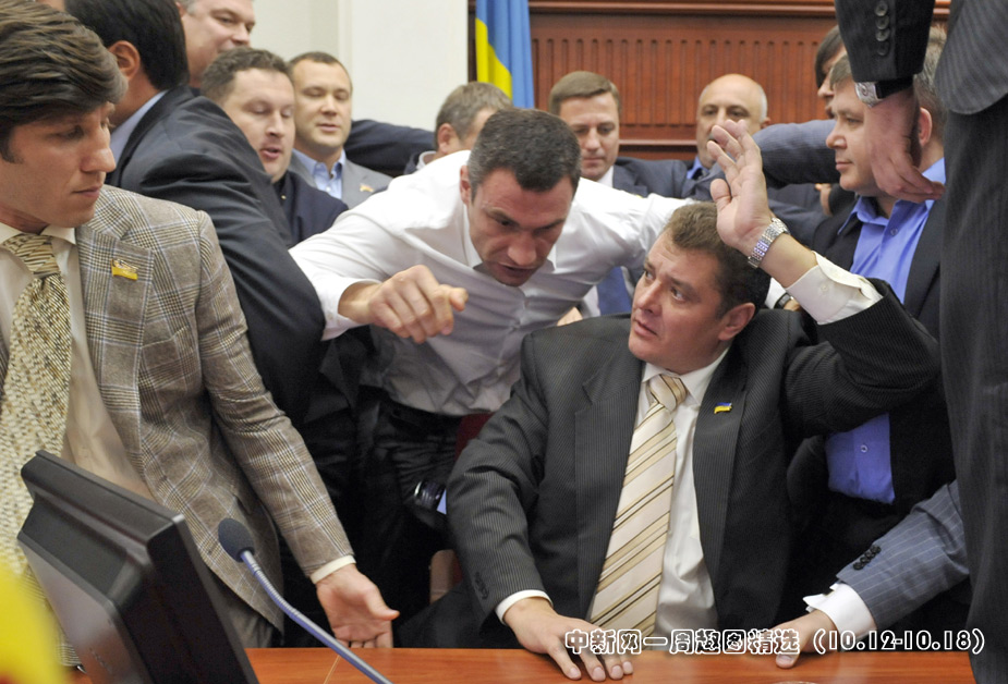 近日,在基輔地方議會上發(fā)生了令人不快的一幕。現(xiàn)年38歲的維塔利·克里琴科與人發(fā)生激烈爭執(zhí),還起了肢體沖突。圖片來源:中國新聞網(wǎng)