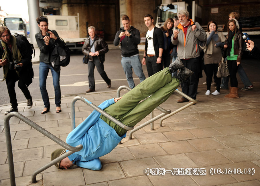 10月16日,來(lái)自?shī)W地利的藝術(shù)家威利·多勒帶著他的城市空間人體藝術(shù)團(tuán)隊(duì),在倫敦街頭進(jìn)行藝術(shù)表演。圖片來(lái)源:中國(guó)新聞網(wǎng)