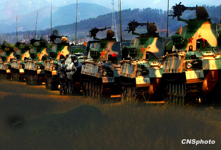 解放軍濟南軍區(qū)“前鋒-2009A”軍事演習(xí),將于10月21日在某合同戰(zhàn)術(shù)訓(xùn)練基地舉行,參加演習(xí)部隊10月20日組織戰(zhàn)前動員。這次演習(xí)主要是由兵力兵器數(shù)量規(guī)模向信息火力效能聚優(yōu)轉(zhuǎn)變、指揮的重心由主攻方向上的重點突破向作戰(zhàn)關(guān)節(jié)要害的體系毀癱轉(zhuǎn)變、火力的運用由概略粗放決策向科學(xué)精細(xì)籌劃轉(zhuǎn)變、協(xié)同的重點由地面步坦行動向陸空火力協(xié)調(diào)轉(zhuǎn)變、行動的控制由時間位置推進(jìn)量向效果態(tài)勢達(dá)成度轉(zhuǎn)變、作戰(zhàn)的目的由殲敵奪地向控要制權(quán)轉(zhuǎn)變。 中新社發(fā) 宋吉河 攝