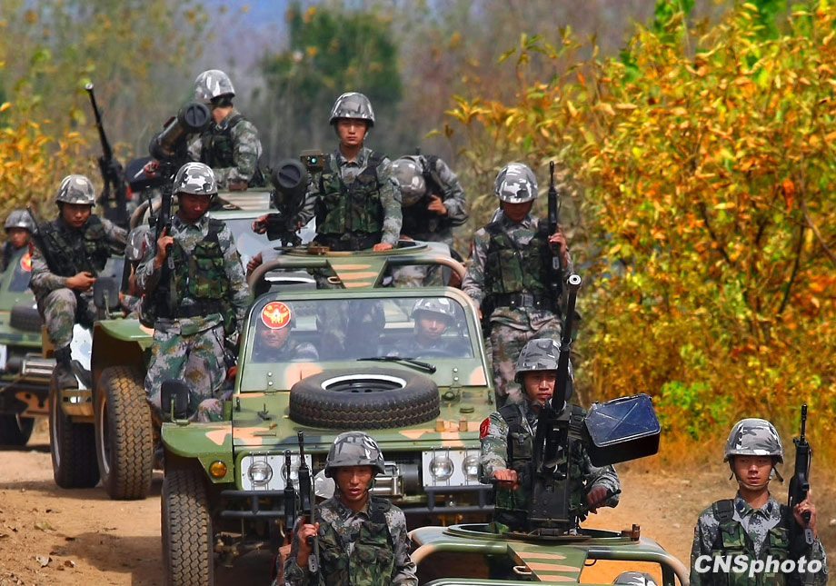 解放軍濟(jì)南軍區(qū)“前鋒-2009A”軍事演習(xí),將于10月21日在某合同戰(zhàn)術(shù)訓(xùn)練基地舉行,圖為即將參加演習(xí)的空降兵部隊(duì)10月20日在進(jìn)行針對(duì)性訓(xùn)練。這次演習(xí)主要是由兵力兵器數(shù)量規(guī)模向信息火力效能聚優(yōu)轉(zhuǎn)變、指揮的重心由主攻方向上的重點(diǎn)突破向作戰(zhàn)關(guān)節(jié)要害的體系毀癱轉(zhuǎn)變、火力的運(yùn)用由概略粗放決策向科學(xué)精細(xì)籌劃轉(zhuǎn)變、協(xié)同的重點(diǎn)由地面步坦行動(dòng)向陸空火力協(xié)調(diào)轉(zhuǎn)變、行動(dòng)的控制由時(shí)間位置推進(jìn)量向效果態(tài)勢(shì)達(dá)成度轉(zhuǎn)變、作戰(zhàn)的目的由殲敵奪地向控要制權(quán)轉(zhuǎn)變。 中新社發(fā) 宋吉河 攝
