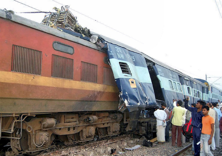 印度北方邦21日凌晨發(fā)生兩列火車相撞事故, 一輛來(lái)自西南部果阿的快運(yùn)列車在馬圖拉附近與一列來(lái)自西部拉賈斯坦邦梅瓦爾的快運(yùn)列車相撞,造成15人死亡。來(lái)源:中國(guó)新聞網(wǎng)