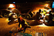 當晚國防大學防務(wù)學院、空軍指揮學院的外軍學員,以及英國、以色列、土耳其、巴基斯坦等國軍事觀察員親臨現(xiàn)場觀摩了后勤保障戰(zhàn)斗準備、自行榴彈炮占領(lǐng)陣地、裝甲車輛“摸黑”開進等戰(zhàn)斗要素。圖為戰(zhàn)地搶修裝甲戰(zhàn)車。中新社發(fā) 宋吉河 攝