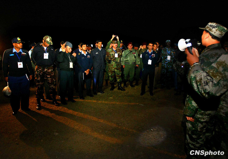 當(dāng)晚國(guó)防大學(xué)防務(wù)學(xué)院、空軍指揮學(xué)院的外軍學(xué)員,以及英國(guó)、以色列、土耳其、巴基斯坦等國(guó)軍事觀察員親臨現(xiàn)場(chǎng)觀摩了后勤保障戰(zhàn)斗準(zhǔn)備、自行榴彈炮占領(lǐng)陣地、裝甲車輛“摸黑”開進(jìn)等戰(zhàn)斗要素。圖為參觀后勤保障基地。中新社發(fā) 宋吉河 攝