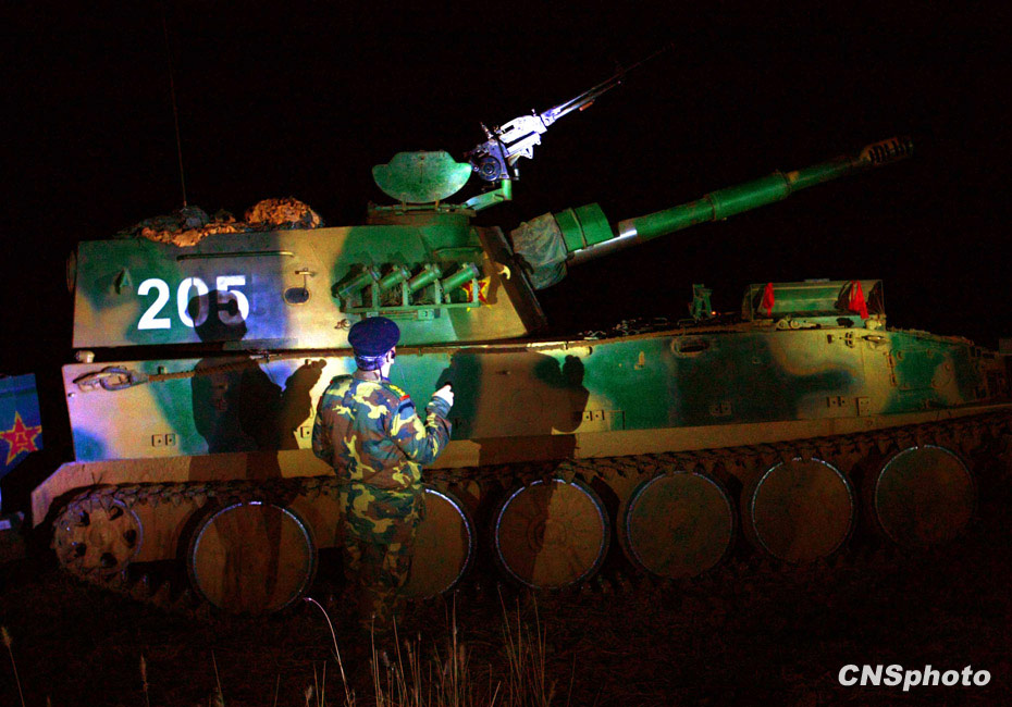 當(dāng)晚國防大學(xué)防務(wù)學(xué)院、空軍指揮學(xué)院的外軍學(xué)員,以及英國、以色列、土耳其、巴基斯坦等國軍事觀察員親臨現(xiàn)場觀摩了后勤保障戰(zhàn)斗準(zhǔn)備、自行榴彈炮占領(lǐng)陣地、裝甲車輛“摸黑”開進(jìn)等戰(zhàn)斗要素。中新社發(fā) 宋吉河 攝