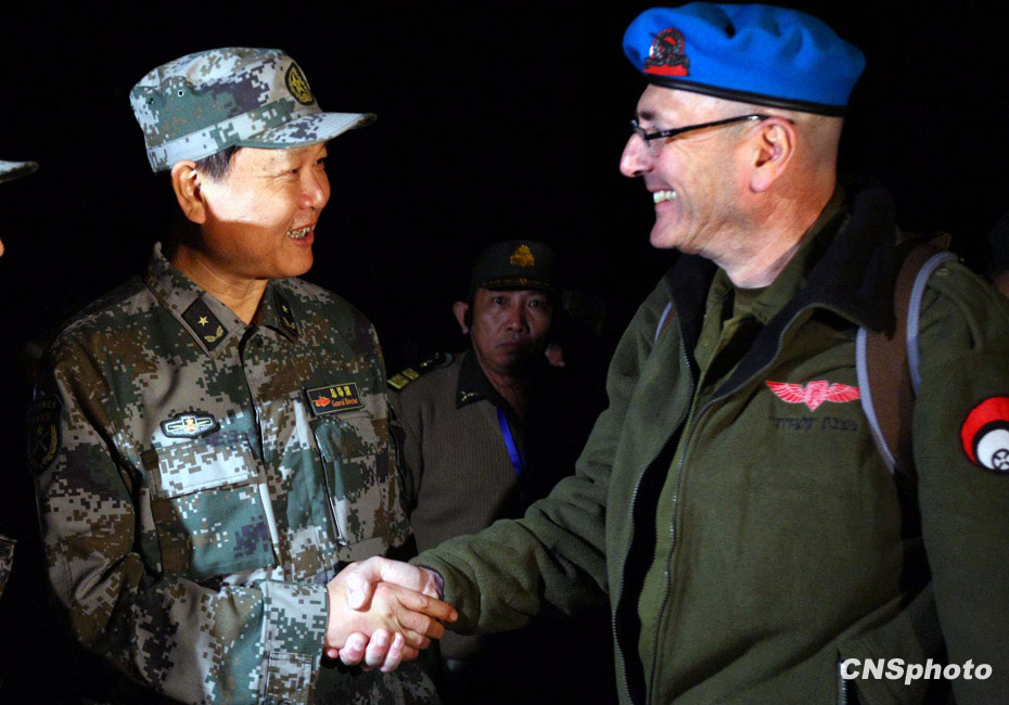 當(dāng)晚國防大學(xué)防務(wù)學(xué)院、空軍指揮學(xué)院的外軍學(xué)員,以及英國、以色列、土耳其、巴基斯坦等國軍事觀察員親臨現(xiàn)場觀摩了后勤保障戰(zhàn)斗準(zhǔn)備、自行榴彈炮占領(lǐng)陣地、裝甲車輛“摸黑”開進(jìn)等戰(zhàn)斗要素。圖為演習(xí)總導(dǎo)演、某集團(tuán)軍參謀長胡修斌少將,在陣地與外軍觀摩團(tuán)他曾經(jīng)的老朋友、老“同行”親切交談。中新社發(fā) 宋吉河 攝