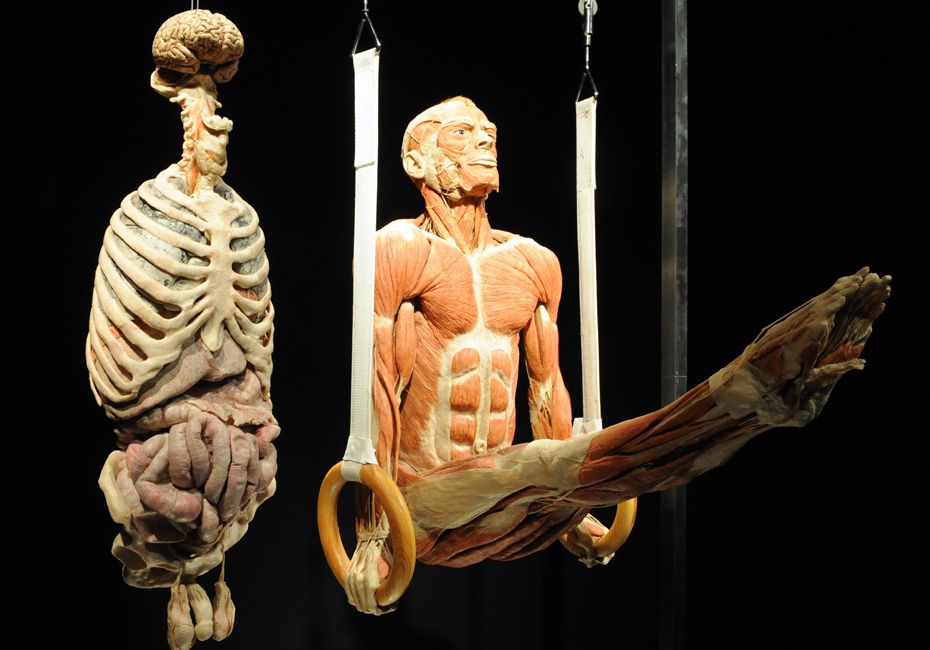 近日,德國解剖學家鞏特爾·馮·哈根斯制作的人體解剖模型在新加坡科學中心展出。圖片來源:中國新聞網(wǎng)