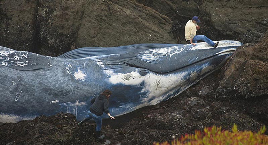 巨型藍(lán)鯨被輪船撞擊致死 尸體沖上海岸