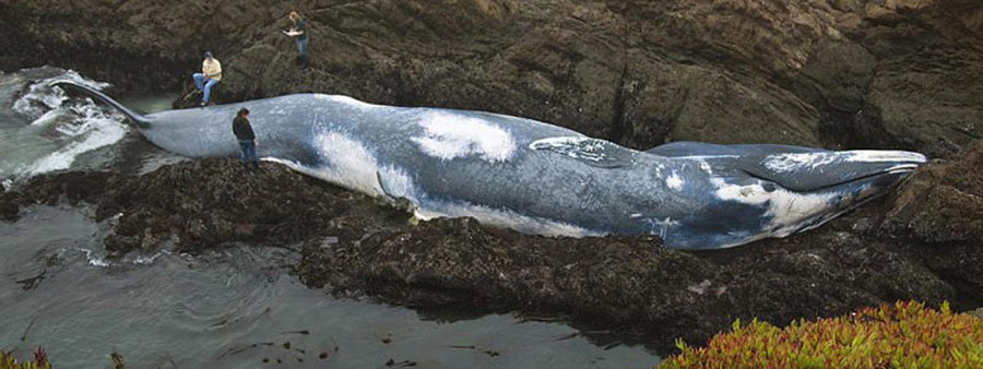近日,在美國(guó)加州海岸附近,一頭體長(zhǎng)21.3米的雌性巨型藍(lán)鯨被途經(jīng)的輪船撞擊致死。10月20日這頭藍(lán)鯨的尸體被海水沖上了海岸。