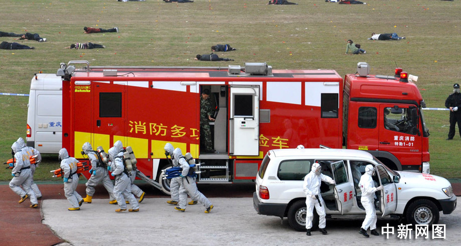 23日,推進(jìn)“平安重慶”建設(shè)突發(fā)事件應(yīng)急演練在該市渝中區(qū)大田灣體育場(chǎng)舉行,重慶各警種突精銳力量重裝登場(chǎng),將各類(lèi)事件一一化解。