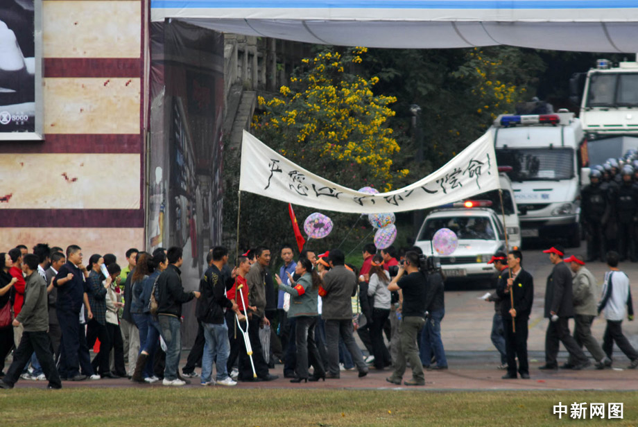 在演練現(xiàn)場(chǎng),重慶發(fā)生“生化襲擊事件”,偵破工作正在進(jìn)行時(shí),受害人家屬以賠償和嚴(yán)懲兇手為由進(jìn)行非法游行,堵塞交通和大型商場(chǎng)通道,擾亂交通秩序和正常經(jīng)營(yíng),引來(lái)大量群眾圍觀。 郝飛 攝