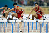 10月24日晚,全運(yùn)會(huì)110米欄預(yù)賽在濟(jì)南奧體中心舉行,“飛人”劉翔以13秒75成績(jī)輕松晉級(jí)決賽。來(lái)源:中國(guó)新聞網(wǎng)