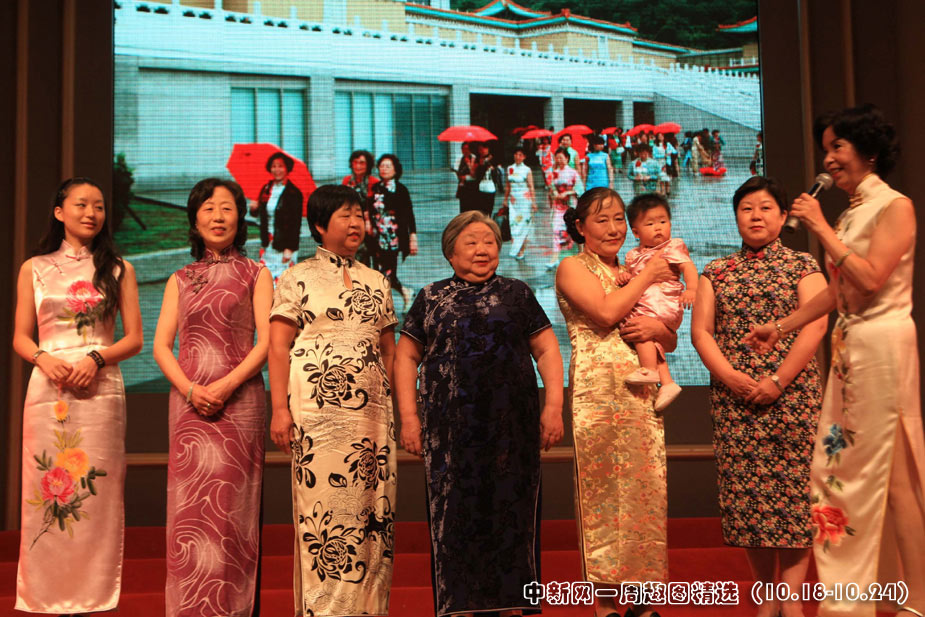 10月22日,上海一家庭七位女性,四代同堂登臺演繹旗袍魅力,其中包括一歲女孩和七十七歲阿婆,成為當(dāng)日《旗袍,向世博走來》大型匯報演示中最引人注目的一幕。中新社發(fā) 潘索菲 攝 >>點(diǎn)擊觀看詳細(xì)內(nèi)容