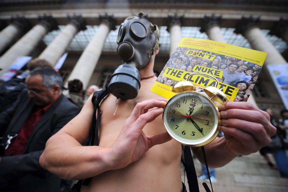 2009年10月24日,當(dāng)日是350全球應(yīng)對氣候變化行動日,世界各地的民眾紛紛用自己的方式來表示對全球氣候變化的關(guān)注和擔(dān)憂。圖為法國民眾組織活動。