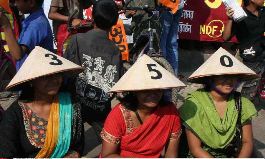 2009年10月24日,當(dāng)日是350全球應(yīng)對氣候變化行動日,世界各地的民眾紛紛用自己的方式來表示對全球氣候變化的關(guān)注和擔(dān)憂。圖為孟加拉民眾組織的活動。