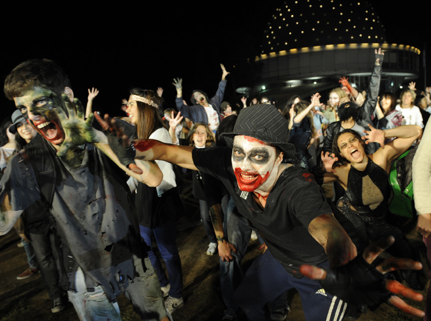 25日,“戰(zhàn)栗全世界”活動在全球300多座城市同期舉行,全球一共有大約20000人同時跳起了邁克·杰克遜著名的戰(zhàn)栗舞。圖片來源:中國新聞網(wǎng)