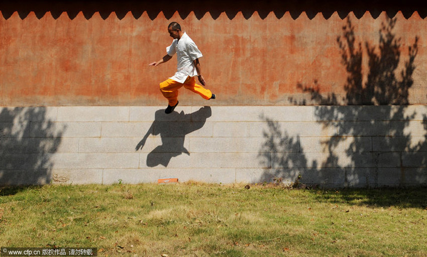 釋理亮平日時常練習飛檐走壁,他說這也是鍛煉腿部爆發(fā)力的一種方式。 林朝陽/CFP