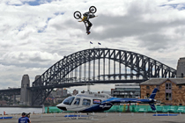 男子騎摩托飛越直升機