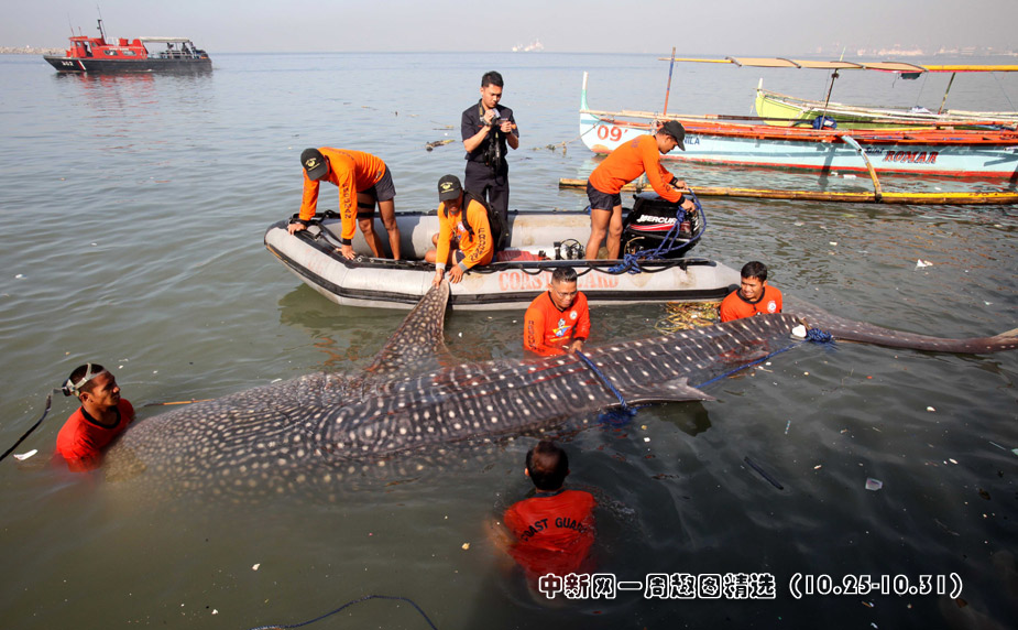10月28日,菲律賓漁民在馬尼拉灣一處防浪堤附近發(fā)現(xiàn)了一具鯨鯊尸體。這具鯨鯊體長(zhǎng)近4米,目前死因不明。>>點(diǎn)擊觀看詳細(xì)內(nèi)容