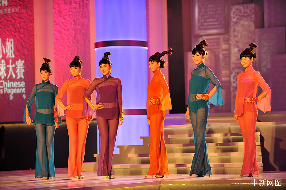 10月31日晚,“2009中華小姐環(huán)球大賽”總決賽上,12名入圍總決賽的佳麗身著各式服裝展現(xiàn)曼妙身姿,此外大賽還設(shè)計了一套“廢品服裝”呼吁環(huán)境保護。中新網(wǎng)記者 金碩 攝