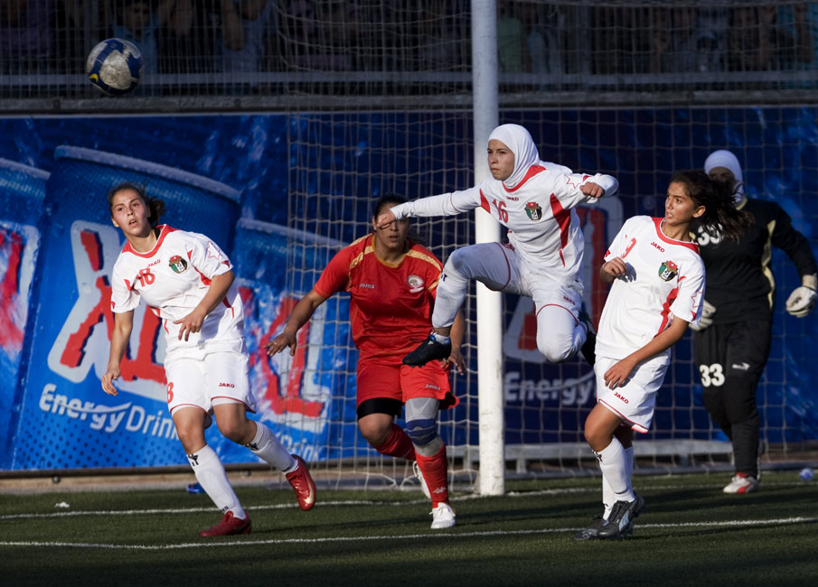 周一(26日),約旦和巴勒斯坦兩國女子足球隊進行了一場友誼賽。 來源:中國新聞網(wǎng)