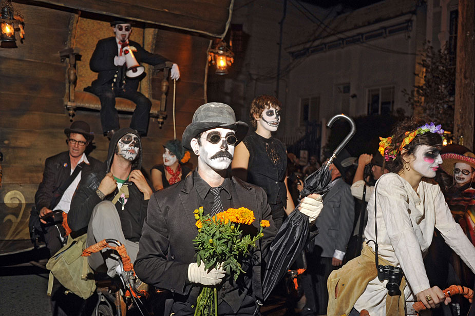 11月2日,美國舊金山居民扮成鬼怪模樣慶!巴鲮`節(jié)”!巴鲮`節(jié)”是拉美地區(qū)的傳統(tǒng)節(jié)日,類似于中國的清明節(jié)。來源:中國新聞網(wǎng)
