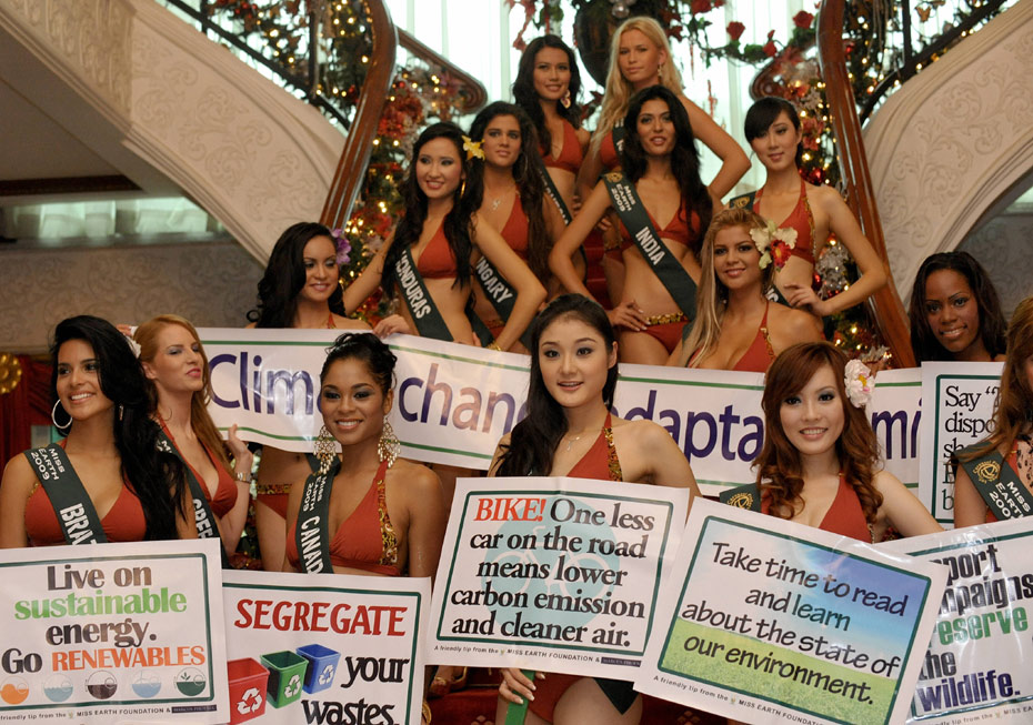 2009世界綠色環(huán)保大使小姐決賽在菲律賓進(jìn)行,來(lái)自世界各地的90名佳麗參與角逐。世界綠色環(huán)保大使(地球小姐)評(píng)選,是全世界唯一以“綠色環(huán)!睘橹黝}注冊(cè)的國(guó)際頂級(jí)權(quán)威大賽,由菲律賓總統(tǒng)阿羅約創(chuàng)始。圖片來(lái)源:中國(guó)新聞網(wǎng)