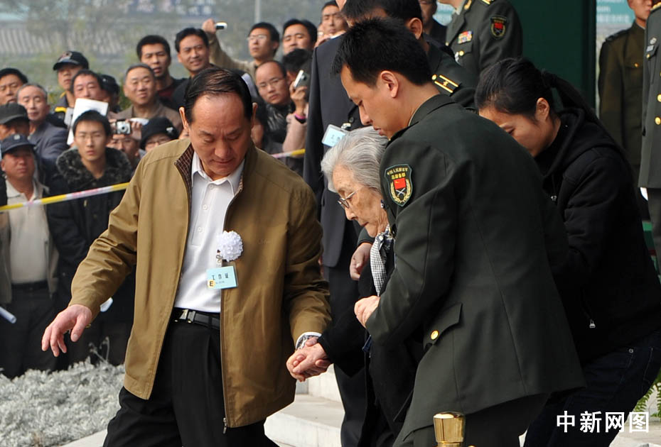 11月6日,“中國航天之父”錢學(xué)森的追悼會在北京八寶山舉行。圖為錢學(xué)森夫人蔣英送別丈夫。中新網(wǎng)記者 金碩 攝
