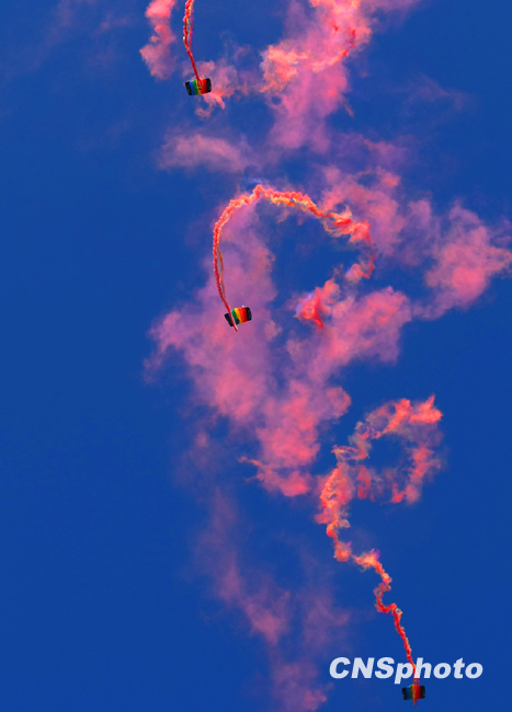 慶祝中國(guó)人民解放軍空軍成立60周年飛行跳傘表演,11月15日上午在北京沙河機(jī)場(chǎng)舉行。