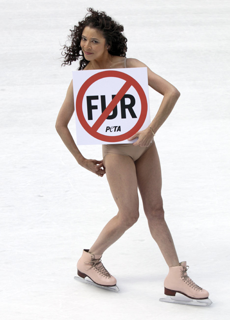 美花滑名將廣場(chǎng)“裸滑” 呼吁動(dòng)物保護(hù)
