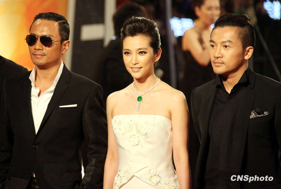 第46屆臺(tái)灣金馬獎(jiǎng)?lì)C獎(jiǎng)禮28日晚上在臺(tái)北盛大舉行,本次揭曉的獲獎(jiǎng)結(jié)果延續(xù)了過(guò)去三屆影帝影后都落入內(nèi)地和香港地區(qū)明星手上的特點(diǎn),李冰冰笑到最后獲封金馬新科影后,而影帝之爭(zhēng)出人意料下了“雙黃蛋”,由張家輝和黃渤共同獲得。圖為張涵予、李冰冰、蘇有朋走星光大道,出席頒獎(jiǎng)典禮。中新社發(fā) 黃少華 攝