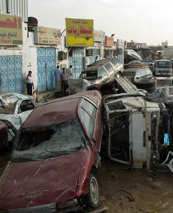 近日,沙特阿拉伯西部地區(qū)遭遇罕見暴雨襲擊。這次暴雨引發(fā)山洪爆發(fā)導致死亡人數(shù)超過百人。圖片來源:中國新聞網(wǎng)