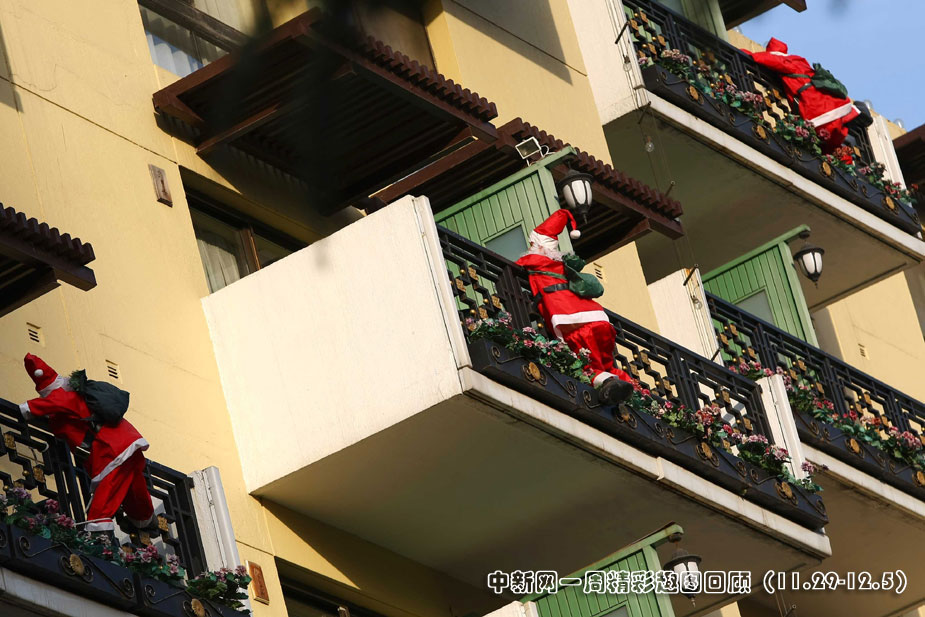 近日,隨著圣誕節(jié)即將到來,北京圣誕氛圍越來越濃厚。在北京某飯店,有許多圣誕老人爬上客房的陽臺準(zhǔn)備送禮物了。中新社發(fā) 富田 攝 圖片來源:中國新聞網(wǎng)>>點(diǎn)擊觀看詳細(xì)內(nèi)容