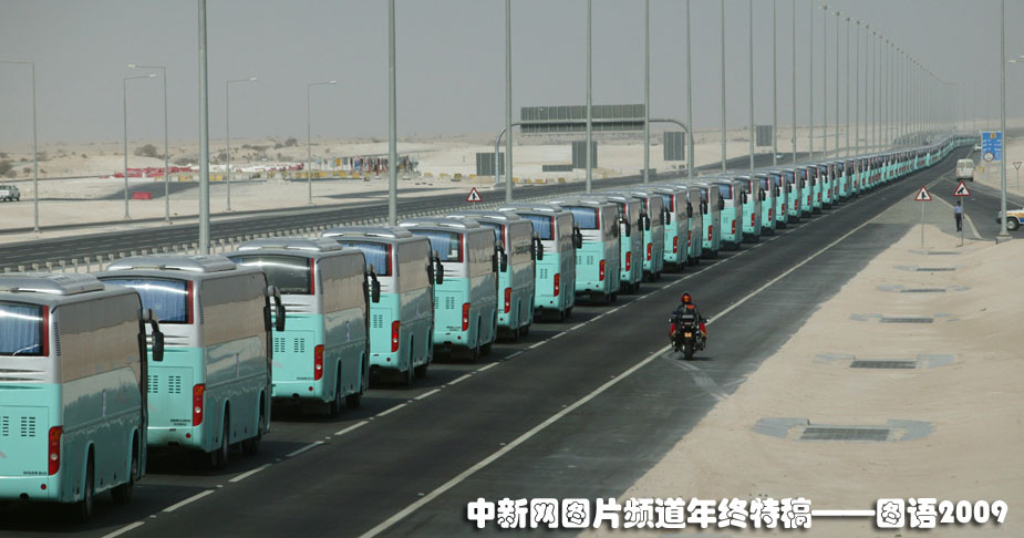 世界最長的巴士車隊(duì):8月21日,325輛卡塔爾公交車組成的車隊(duì)打破了巴士游行吉尼斯紀(jì)錄。圖片來源:中國新聞網(wǎng)