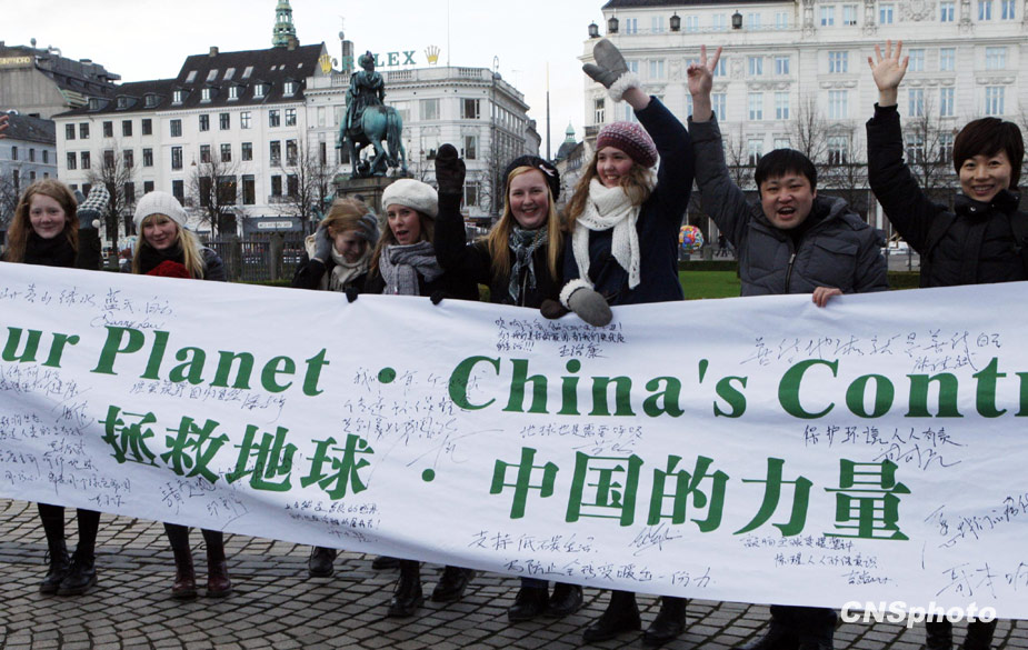 12月12日,正在丹麥哥本哈根召開的聯(lián)合國氣候會議舉行部分與會國會外會議,500多個來自70多個國家和組織的成員以及當(dāng)?shù)丨h(huán)保者6萬多人匯集哥本哈根市貝拉會展中心進(jìn)行大游行。圖為在哥本哈根環(huán)保大游行醒目的中國“環(huán)保先鋒行活動”。 中新社發(fā) 錢興強(qiáng) 攝