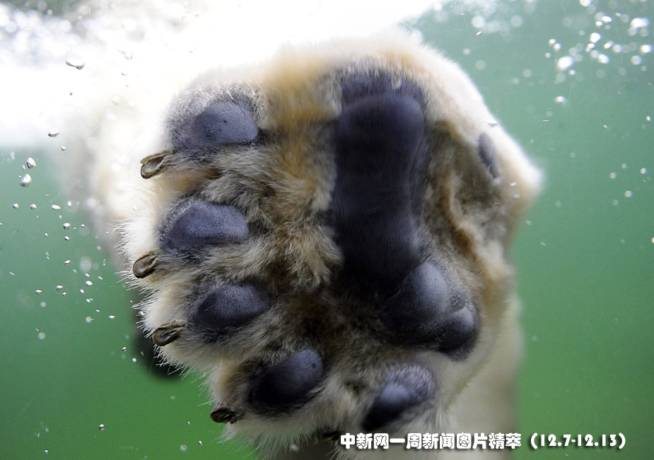 8日(周二),在德國蓋爾森基興的動物園中,一頭熊在水中玩耍。圖片來源:中國新聞網(wǎng)