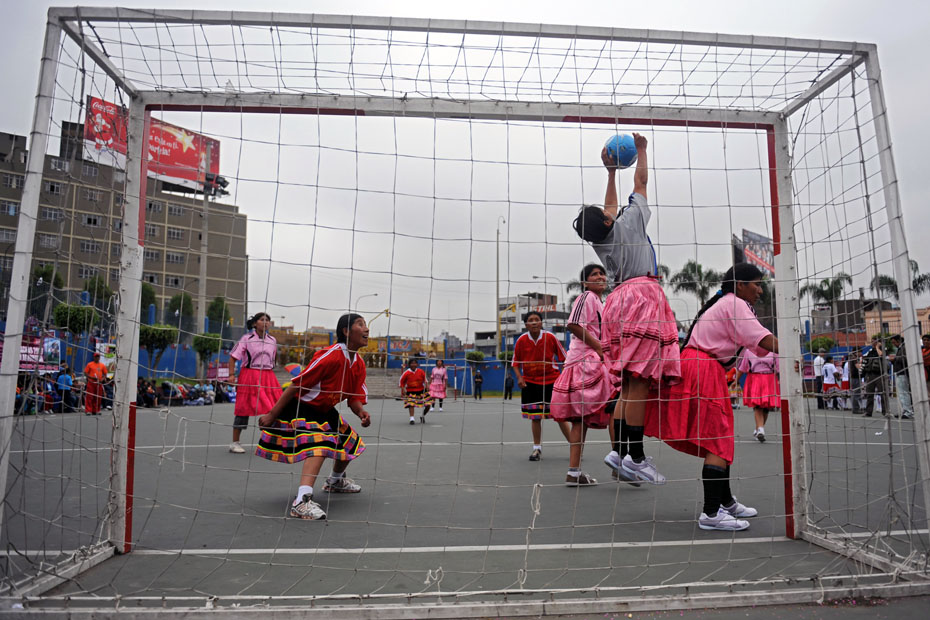 12月12日,秘魯印第安婦女在利馬國(guó)家體育場(chǎng)外舉辦了一場(chǎng)特別的足球賽,所有的球員均身著傳統(tǒng)服飾光腳上陣妙趣橫生。圖片來(lái)源:中國(guó)新聞網(wǎng)