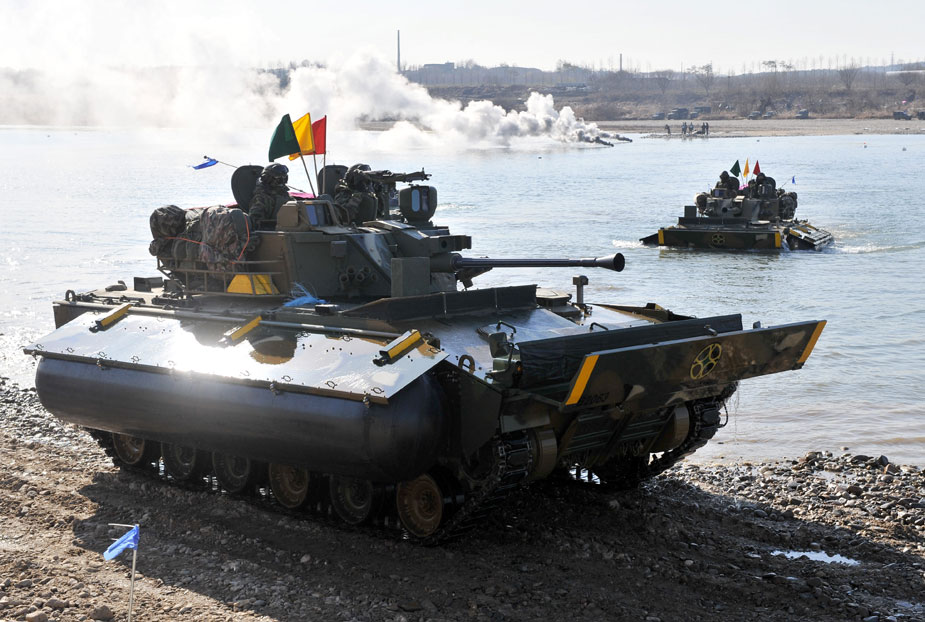 12月16日,韓國第20師團(tuán)機(jī)械化部隊(duì)在京畿道驪州南漢江一帶進(jìn)行大規(guī)模渡河實(shí)戰(zhàn)訓(xùn)練。該訓(xùn)練以培養(yǎng)戰(zhàn)斗執(zhí)行能力為重點(diǎn)。圖片來源:中國新聞網(wǎng)