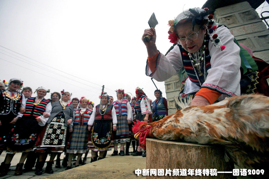 保加利亞“公雞節(jié)”——保加利亞首都索非亞東部一個(gè)村莊2月2日慶!肮u節(jié)”,當(dāng)?shù)貗D女手舉穿著褲子的公雞又唱又跳,之后宰殺公雞作為祭祀貢品。當(dāng)?shù)貞c祝該節(jié)意在為家中男孩祈求健康。