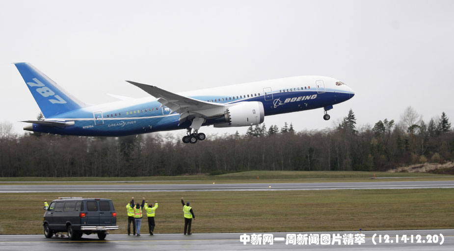 15日(周二),美國(guó)波音公司最新夢(mèng)幻客機(jī)波音787終于在華盛頓州升空試飛,兩萬(wàn)五千多人忍受寒冷觀看了試飛過(guò)程。圖片來(lái)源:中國(guó)新聞網(wǎng)