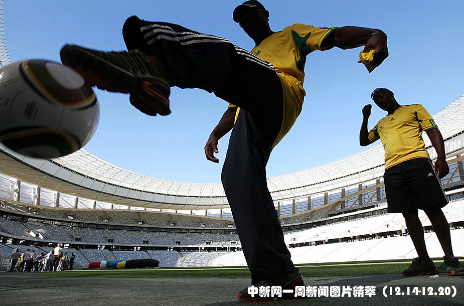 南非開普敦的新體育場(chǎng)竣工儀式在14日(周一)舉行,圖為球迷們?cè)趦x式上進(jìn)行表演。該體育場(chǎng)是為明年南非足球世界杯而建,可容納6.8萬(wàn)名觀眾。圖片來(lái)源:中國(guó)新聞網(wǎng)