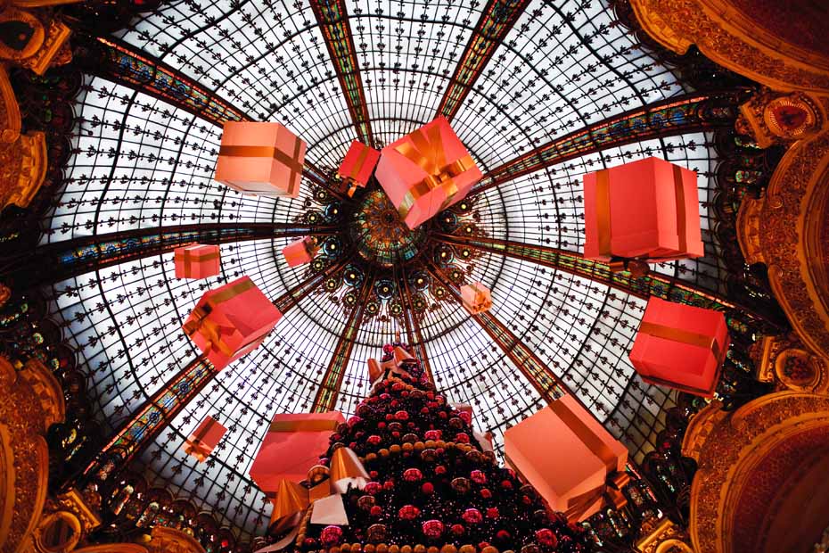 圖為法國巴黎一家商場布景,圣誕氣氛十足。