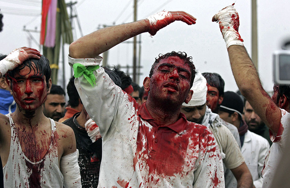 12月28日,印度穆斯林慶祝阿舒拉節(jié)。一些當(dāng)?shù)啬滤沽衷趦x式上用鐵鞭抽打自己,以此慶祝節(jié)日。圖片來源:中國新聞網(wǎng)