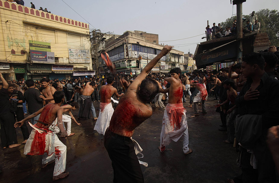 12月28日,印度穆斯林慶祝阿舒拉節(jié)。一些當(dāng)?shù)啬滤沽衷趦x式上用鐵鞭抽打自己,以此慶祝節(jié)日。圖片來(lái)源:中國(guó)新聞網(wǎng)