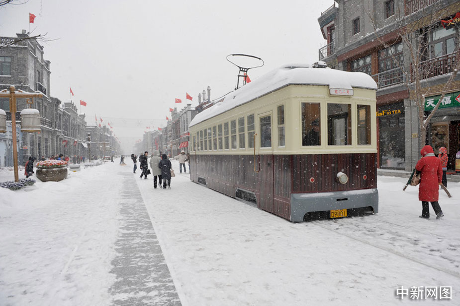 大雪中的北京前門(mén)商業(yè)區(qū)。中新網(wǎng)記者 金碩 攝