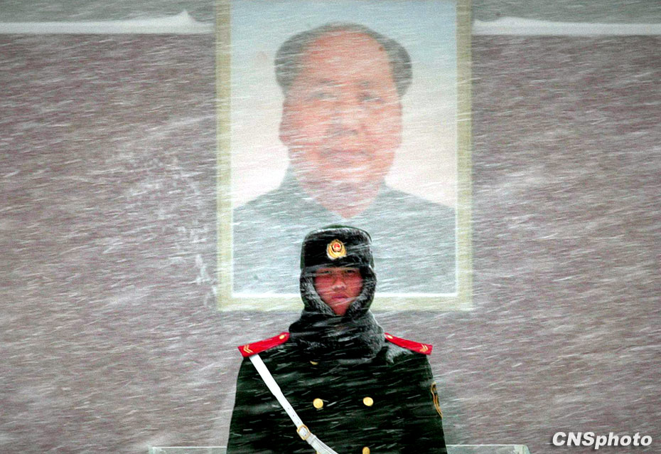 1月3日,一場大雪將華北地區(qū)再度披上厚厚的銀裝。圖為天安門武警在大雪中堅(jiān)守崗位。 中新社發(fā) 張郎 攝