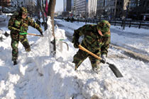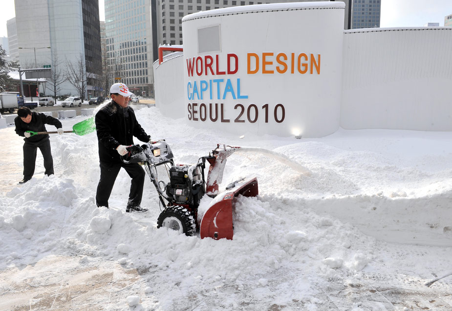 四日,韓國大部分地區(qū)遭遇大雪。至下午二時左右,首爾地區(qū)積雪厚度超過二十八厘米,這是韓國自一九三七年開始進(jìn)行積雪量觀測以來的最新紀(jì)錄。圖為1月5日,民眾在街頭除雪。