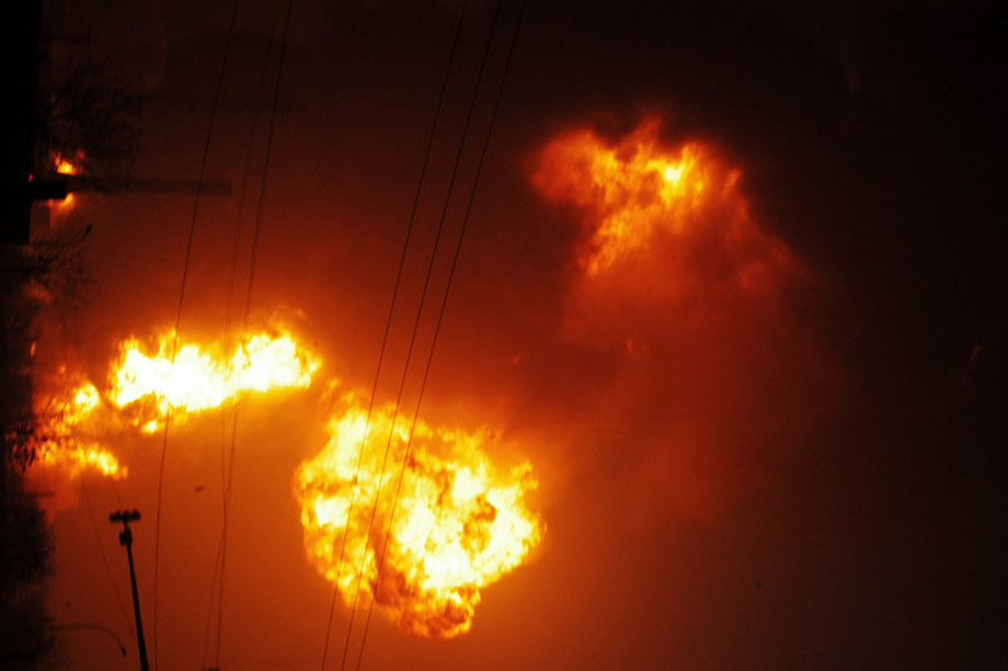 1月7日,蘭州石化公司石油化工廠316罐區(qū)爆炸著火。甘肅省政府當日深夜在現(xiàn)場舉行新聞發(fā)布會說,事故造成1人重傷、5人輕傷、9人留院觀察、5人失蹤。 圖為爆炸現(xiàn)場。于永昭/CFP