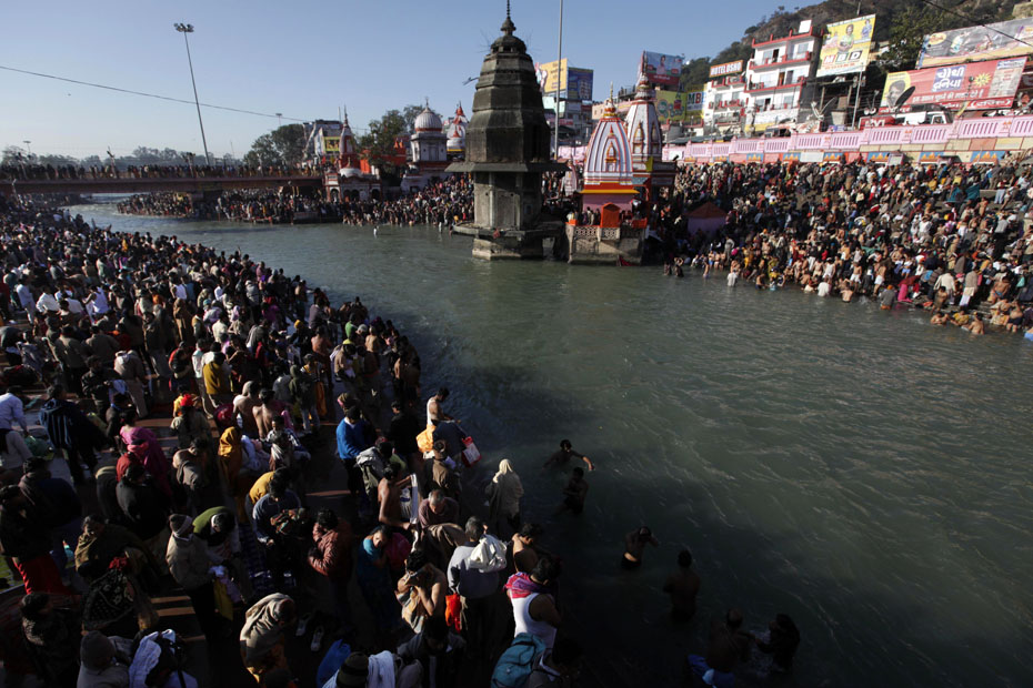 1月14日,數千名印度教信徒前往恒河參加世界上最大的宗教集會大壺節(jié),并在印度圣河——恒河進行了沐浴儀式。圖片來源:中國新聞網
