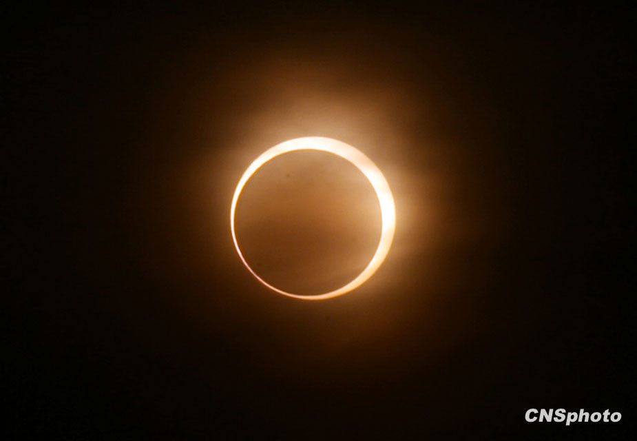 本世紀(jì)首場(chǎng),也是全球未來1000年內(nèi)環(huán)食持續(xù)時(shí)間最長(zhǎng)的日環(huán)食1月15日劃過天際。日環(huán)食帶從印度洋經(jīng)過緬甸進(jìn)入中國(guó)國(guó),由云南經(jīng)四川省的部分地區(qū),再穿過重慶市、湖北省西北部,直至華北地區(qū)。圖片來源:中國(guó)新聞網(wǎng)