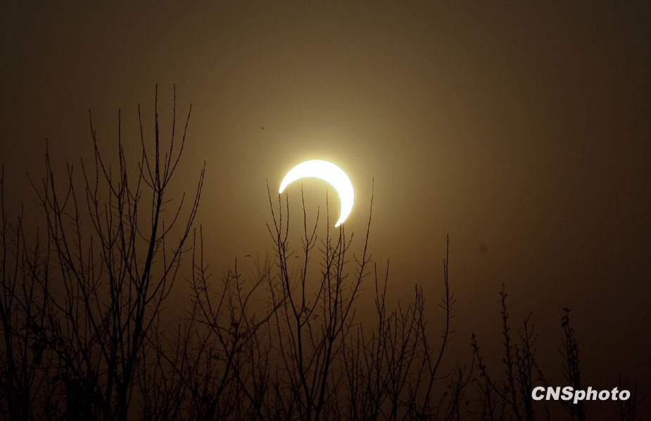 本世紀(jì)首場(chǎng),也是全球未來1000年內(nèi)環(huán)食持續(xù)時(shí)間最長(zhǎng)的日環(huán)食1月15日劃過天際。日環(huán)食帶從印度洋經(jīng)過緬甸進(jìn)入中國(guó)國(guó),由云南經(jīng)四川省的部分地區(qū),再穿過重慶市、湖北省西北部,直至華北地區(qū)。圖片來源:中國(guó)新聞網(wǎng)